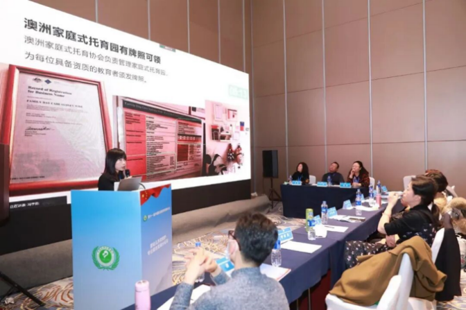 全国托育论坛进行创业经验分享的林少慧
